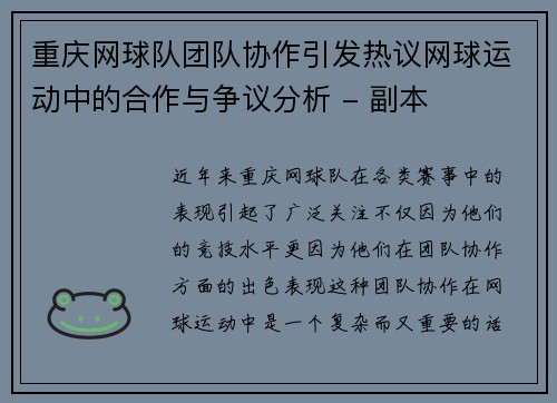 阅读近日,乒乓球界的最新动态引发了广泛关注,重庆乒乓球队凭借其强劲的实力再度崭露头角,并在最新发布的乒乓球TOP10榜单中占据了重要位置。本文将从四个方面进行详细阐述:重庆队员的个人实力、团队协作的重要性、青少年培养机制,以及未来发展前景。通过这些方面,我们可以更全面地了解重庆乒乓球队背后的故事和成就。...